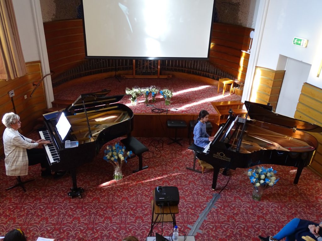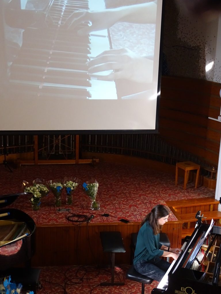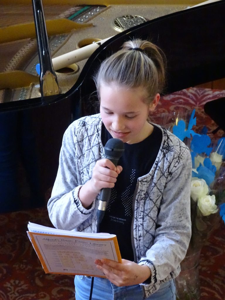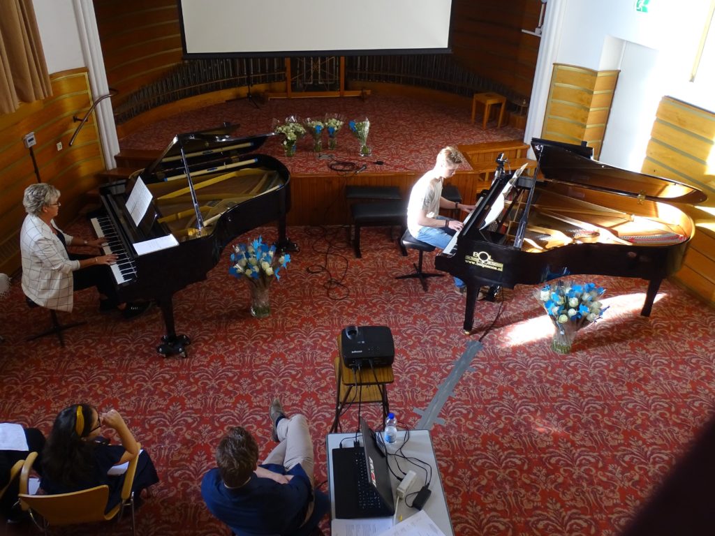 Het was weer een mooie mix van genres: van klassiek tot eigentijdse filmmuziek, van solisten en begeleiding van Dorrie op de tweede vleugel tot vier handen op één vleugel. In totaal traden er 25 pianisten op, waarbij twee jongedames wellicht het meest in het oog sprongen. Zowel Anoush als Tessa had ondersteunende beelden uit natuurfilms.