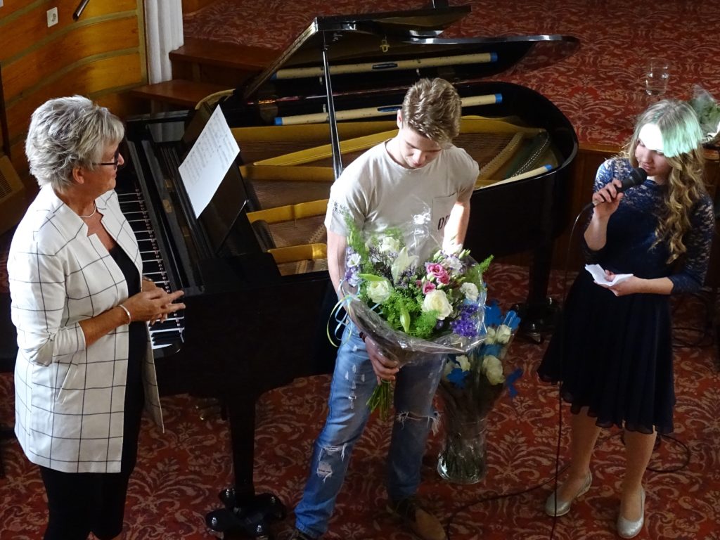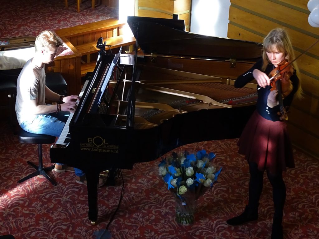 Als kers op de taart werden de toehoorders getrakteerd op een gastoptreden van Vivian, 3e-jaars studente aan het Koninklijk Conservatorium in Den Haag. Zij begeleidde op viool haar broer Stefan. Samen brachten zij de titelsong van Schindler’s List ten gehore.